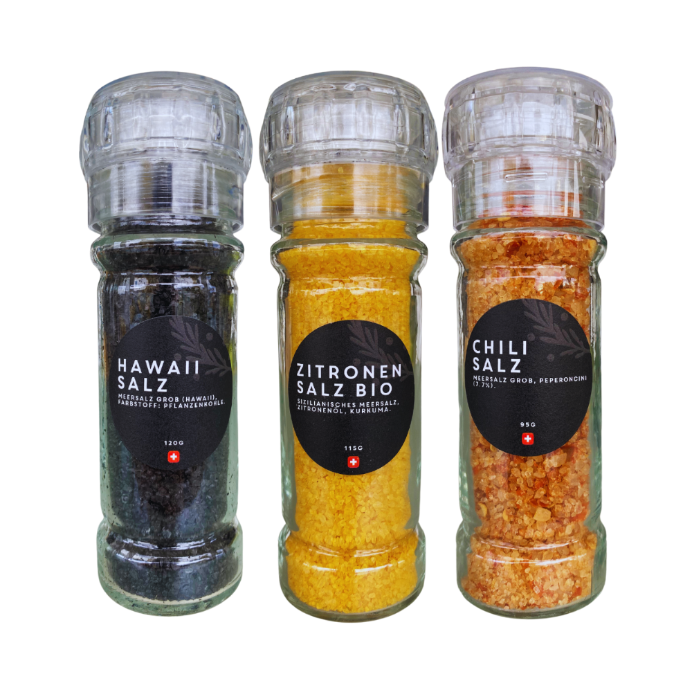 Für alle die mediterrane Küche lieben ist dieses Set die perfekte Kombination. Kaufe diese Mühlen im Set und erhalte 15% Rabatt. Du bekommst ein Hawaii Salz, ein sizilianisches Zitronensalz und eine Chilisalz Gewürzmühle.