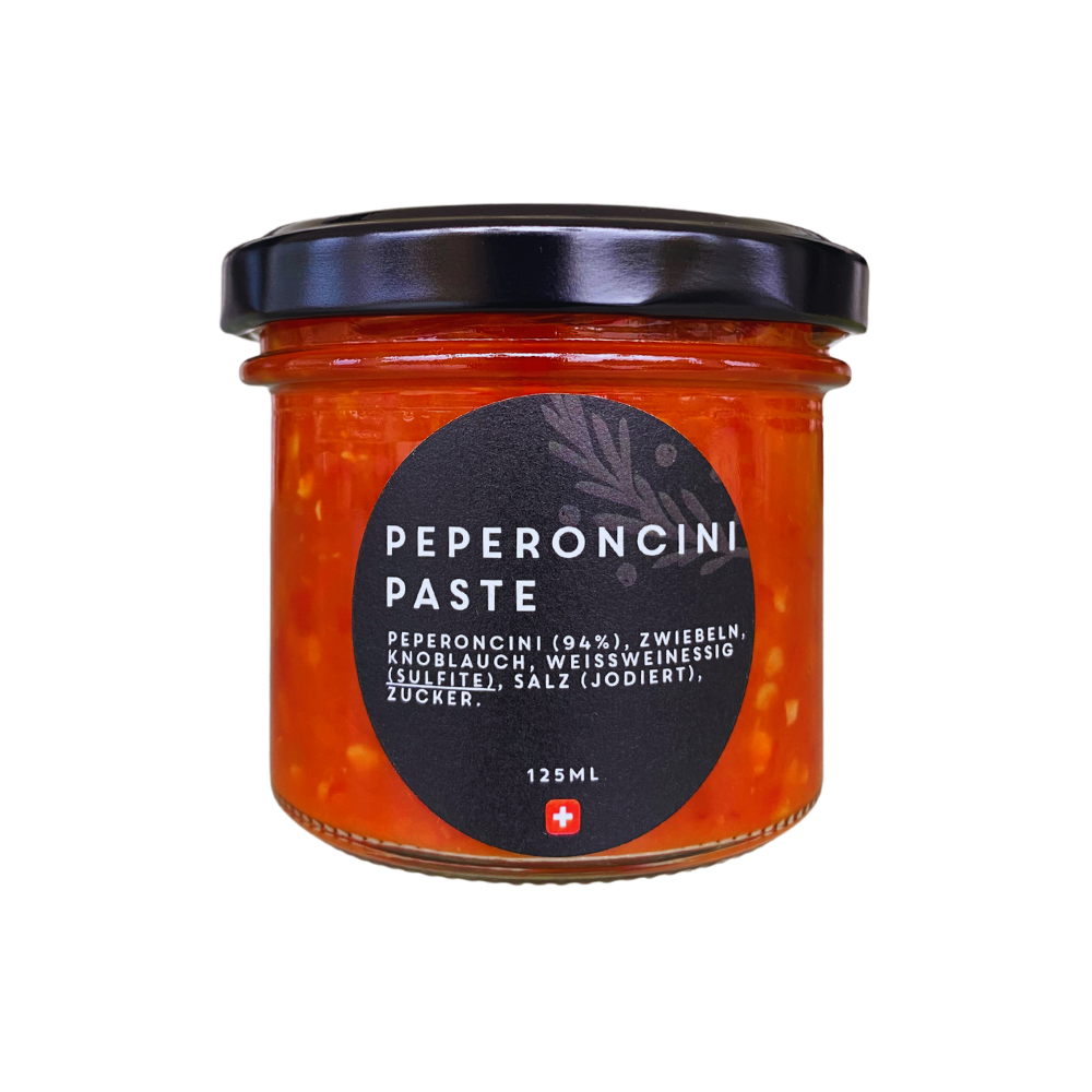 Inhaltsstoffe: Peperoncini (94%), Zwiebeln, Knoblauch, Weissweinessig (jodiert), Salz (jodiert), Zucker. 125ml Verwendung: Fajitas, Pasta, Raclette, Asiatische Gerichte, Fleisch, Gemüse |