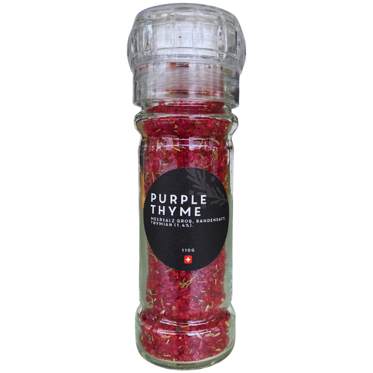 Gewürzmühle mit Keramikmahlwerk mit grobem Meersalz, Randensaft und Thymian (1,4%), 110g